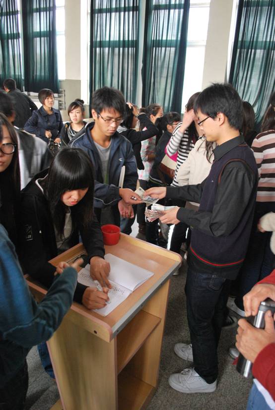 在募捐現場,學生會向藝術設計 08 級同學做了情況簡報,同學們紛紛解囊相助,寬慰家長,希望能盡自己的微薄之力幫助尹麗同學擺脫病魔的困擾。尹麗父母被熱烈的場面感動的熱淚盈眶,氣氛非常感人。