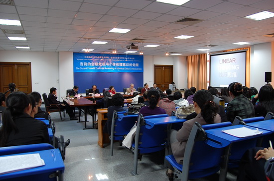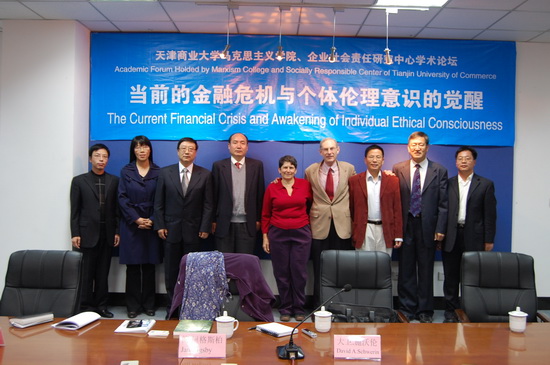 10 月 21 日下午, 我校兼職教授、美國著名學者大衛·施沃倫博士一行三人在 圖書館多功能報告廳 為師生們作了一場精彩的學術報告,本次報告會也是 馬克思主義學院舉辦的系列學術論壇中的第 14 期,本期論壇的主題是:“當前的金融危機與個人倫理意識的覺醒”,由馬克思主義學院副院長初明利教授主持,馬克思主義學院的全體教師和研究生參加了本次論壇。