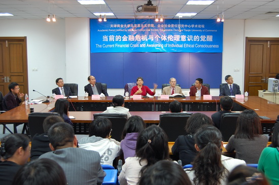 大衛·施沃倫博士和簡·里格斯柏博士從個人倫理意識的覺醒這一視角審視當前波及全球的金融危機,見解頗為獨特,使與會師生深受啟發。報告結束后的互動環節中,師生們與各位專家進行了充分而深入的交流。
