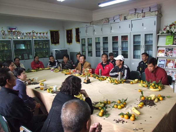 10 月 21 日 下午 3 點,我校教工網球協會全體會員在體衛部會議室召開慶功會。慶賀我校教工網球一隊在天津市教育系統第五屆網球公開賽中獲得冠軍、二隊獲得第六名的優異成績。校黨委副書記、工會主席史習紅、校工會常務副主席宋樹發、女工主任衛弘參加了會議。