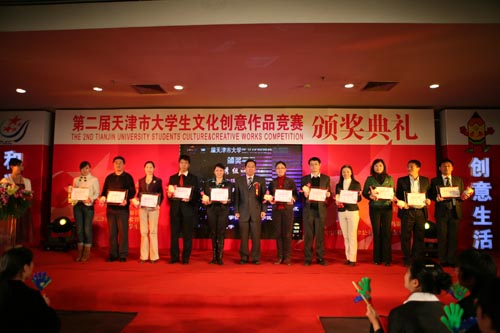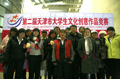11 月 17 日 晚,在天津美術學院美術館落幕的第二屆天津市大學生文化創意作品競賽頒獎晚會上,我校三件作品獲得一等獎,我校團委榮獲優秀組織獎。