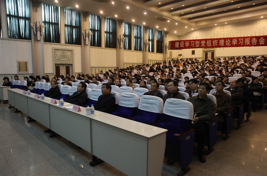 11 月 20 日, 我校舉行“ 建設學習型黨組織”理論學習報告會, 邀請中國人民大學國際關系學院副院長、博士生導師、著名學者金燦榮教授作了題為《國際形勢與當前我國外交戰略》 的專題報告。校黨委副書記楊萬義主持報告會。校領導劉書瀚、魏胤亭出席,校院兩級中心組成員、全體中層干部、各黨支部書記、馬克思主義學院師生和學生黨員代表 500 余人參加報告會。這是我校學習貫徹落實黨的十七屆四中全會精神,進一步推動學習型黨組織建設的重要舉措。