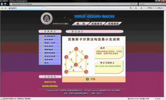 在北京決賽現場,我校參賽者按規定進行了 5 分鐘演示和講解,并回答了專家提出的問題。《〈數據結構〉網絡教學系統》共分為 3 大模塊:在線學習、在線測試與學習資源下載。該系統以其界面簡潔、功能完備、學習資源詳盡與適用教學等特色,獲得評審組好評,最終贏得高教理科組二等獎,并由教育部教育管理信息中心頒發了獲獎證書及獎品。