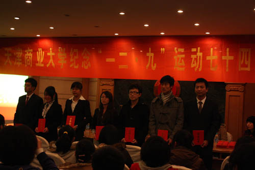 會(huì)上,一段視頻為展示了歷史上的今天那段難以忘懷的歷史,展現(xiàn)了一二·九運(yùn)動(dòng)中愛(ài)國(guó)青年的英勇與頑強(qiáng)。于俊如教授為知行團(tuán)校優(yōu)秀學(xué)員,團(tuán)校社會(huì)實(shí)踐先進(jìn)個(gè)人、先進(jìn)集體和榮獲“緬懷歷史酬壯志,我與天商共發(fā)展”論文的同學(xué)頒發(fā)了榮譽(yù)證書。