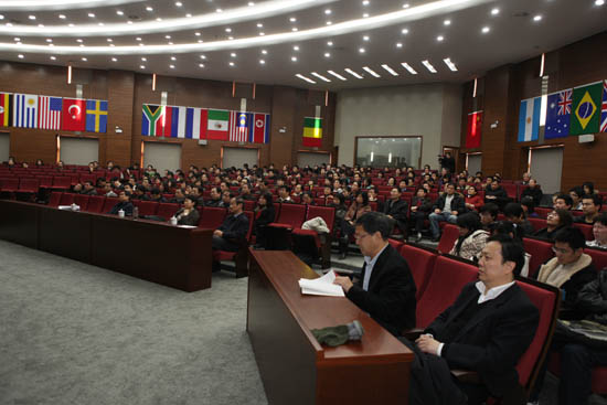 此次會議還邀請到國家教育行政學院副院長李文長教授在會上作了題為 “ 高等教育的科學發展與質量建設 ” 的報告。報告內容主要分為兩大部分:一、堅持科學的高等教育發展觀;二、加強高等教育質量建設。李教授的報告結合國內外高等教育的實際情況,引用多種數據,陳述觀點明確到位,得到與會師生的認同。