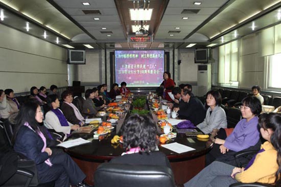 座談會上,校女工委員會主任衛弘回顧總結了建校以來女工工作發展和取得的成績;全國優秀教師、天津市教學名師生物技術與食品科學學院副院長王素英教授、天津市優秀教師、理學院副院長羅蘊玲教授、天津市勞動模范、 FIU 合作學院院長王文君教授、天津市三八紅旗手、經濟學院周桂榮教授、天津市師德先進集體生物技術與食品科學學院黨總支書記魯曉翔教授結合知識女性自身發展情況,談了自己在工作中的體會和感受。大家表示,努力做政治堅定、道德高尚、業務精湛、事業有成的女性,在推動教育事業科學發展中展示女性風采,做出無愧于時代的貢獻!