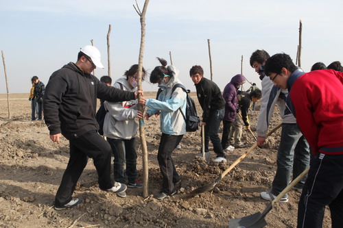 為落實市委、市政府關于加強生態環境建設的工作目標,進一步提升我市生態環境質量,按照市教委《關于認真搞好 2010 年全市大學生義務植樹活動的通知》要求, 3 月 27 日,我校組織 200 名學生到 西青區鴨淀水庫 參加天津市 2010 年大學生義務植樹活動。副校長馬三津,校辦、學生處、總務處、團委、校醫院等相關部門負責人,各學院黨總支分管學生工作的書記、副書記、輔導員和同學們一起參加了此次活動。此次植樹活動在校有關領導的親自指導下,在學工部、總務處、團委等有關部門的精心組織和大力支持下,本著“安全第一,保質保量”的工作要求,圓滿完成植樹任務。參加植樹活動的全體師生共植樹 1500 多棵,得到西青區農林部門的好評。