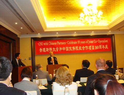 查理斯特校長 Ian Goulter ,行政副校長 Lyn Gorman ,國際商務與合作學院院長 John Atkinson ,國際關系辦公室主任 Kirsty Oke 專程來到上海參加會議。教育部留學服務中心白章德主任、國際合作處車偉民處長、云南財經大學汪戎校長、長春財經大學宋冬林、揚州大學副校長焦新安也專程赴滬參會。相關院校主管國際教育的部門負責人參加了會議。