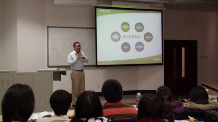 3 月30 日下午,作為實(shí)踐教師教學(xué)團(tuán)隊(duì)成員之一,我??妥淌凇⒊蚬芾砑瘓F(tuán)管理事業(yè)部總經(jīng)理余榮熙先生,為07 級高爾夫經(jīng)營管理專業(yè)方向?qū)W生作了本學(xué)期系列講座的第一講。余榮熙總經(jīng)理用特有的講述方式,以企業(yè)家的視角和成功的實(shí)踐經(jīng)驗(yàn),從中國高爾夫產(chǎn)業(yè)結(jié)構(gòu)切入,深入淺出地講解了高爾夫球會的基本崗位架構(gòu)及崗位職責(zé),高爾夫俱樂部的文化理念、經(jīng)營理念和管理特點(diǎn),各層級管理人員必備的素質(zhì)要求,以及高爾夫經(jīng)營管理專業(yè)學(xué)生的職業(yè)理想等。講座生動、形象、針對性強(qiáng),使全體同學(xué)受益匪淺并深受啟迪。