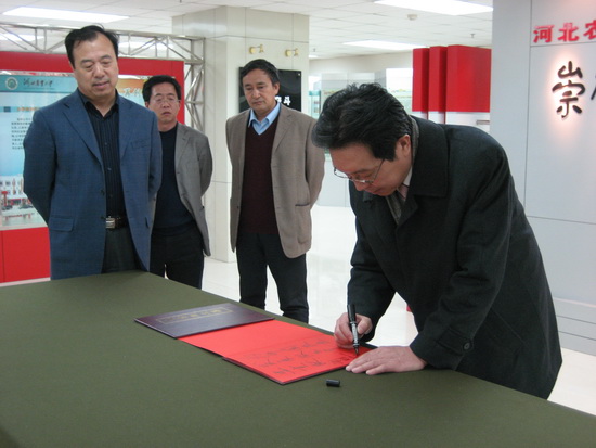 會后,劉書瀚校長一行在河北農大王志剛校長的陪同下,參觀了河北農業大學“太行山道路”展館和文化園,最后劉校長為河北農業大學題詞留念。