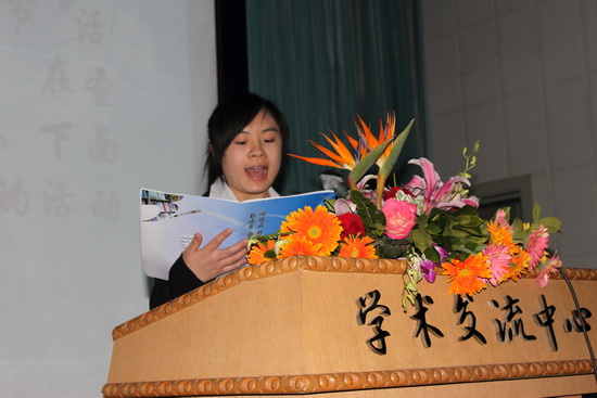 開幕式在以“讀書勵(lì)志”為主題的 DV 展演中拉開序幕。校學(xué)生會(huì)主席張環(huán)宇致開幕辭。她表示,在三十年校慶之際,應(yīng)進(jìn)一步樹立我校學(xué)術(shù)活動(dòng)品牌,弘揚(yáng)我校濃厚的學(xué)術(shù)之風(fēng)。本屆讀書節(jié)應(yīng)著重在提高活動(dòng)的參與度、加強(qiáng)活動(dòng)的專業(yè)特色化、增強(qiáng)活動(dòng)的時(shí)代性等方面下功夫。校學(xué)生會(huì)學(xué)習(xí)部部長李思霖介紹活動(dòng)安排。校學(xué)生會(huì)副主席徐源宣讀了活動(dòng)倡議書,倡議大家一起來讀書,廣泛讀書,學(xué)會(huì)讀書,努力營造我校良好的讀書氛圍。隨后,天津市學(xué)生聯(lián)合會(huì)執(zhí)行主席于寶剛發(fā)言,他指出“讀書節(jié)”這一品牌活動(dòng)在天津市各高校中擁有較高知名度,希望同學(xué)們以書籍為伴,以讀書為友,立志終身讀書。