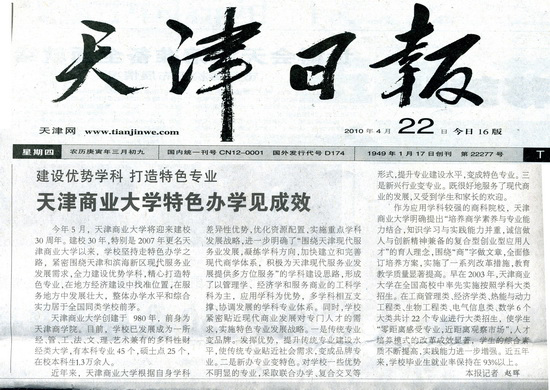 天津日報以“建設優勢學科 打造特色專業”為題報道我校辦學情況(圖文)