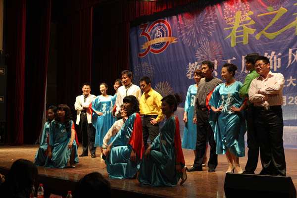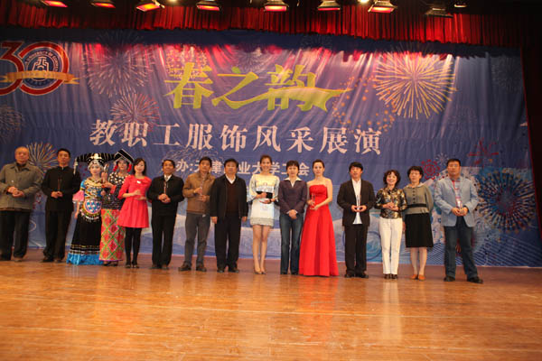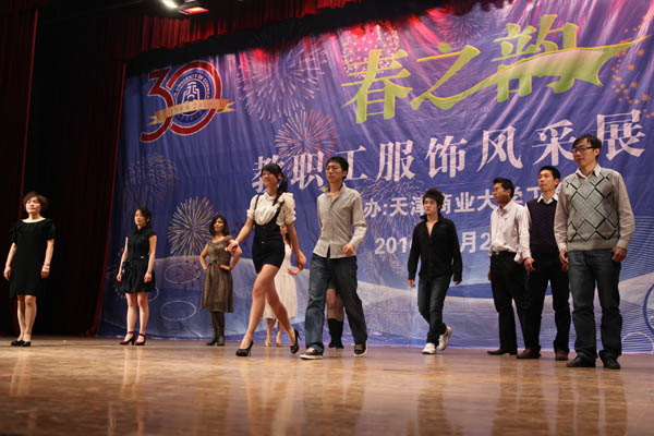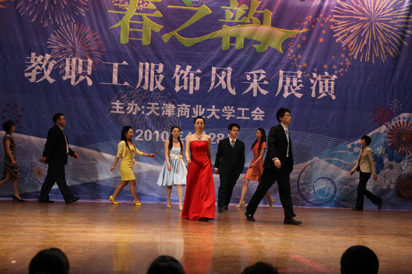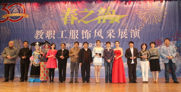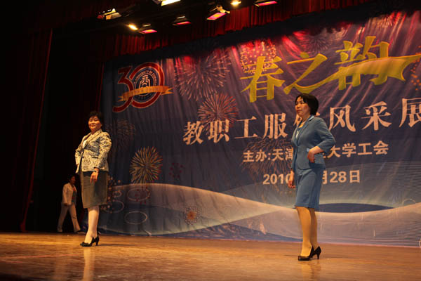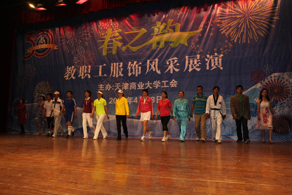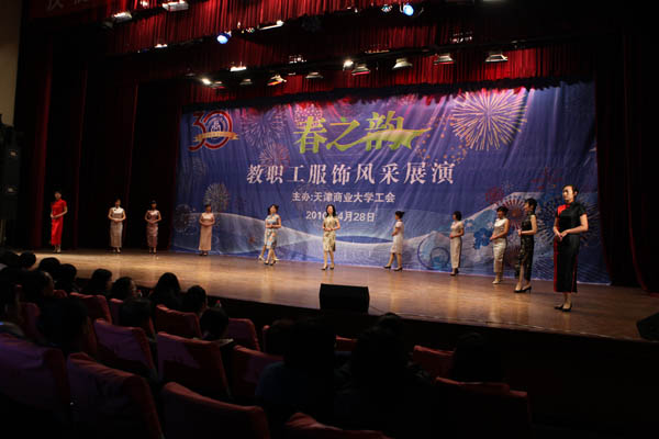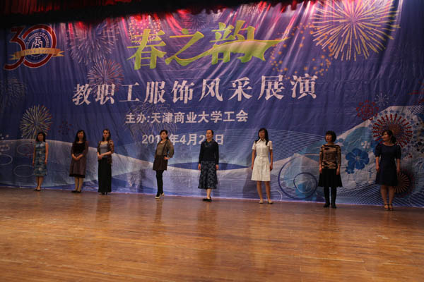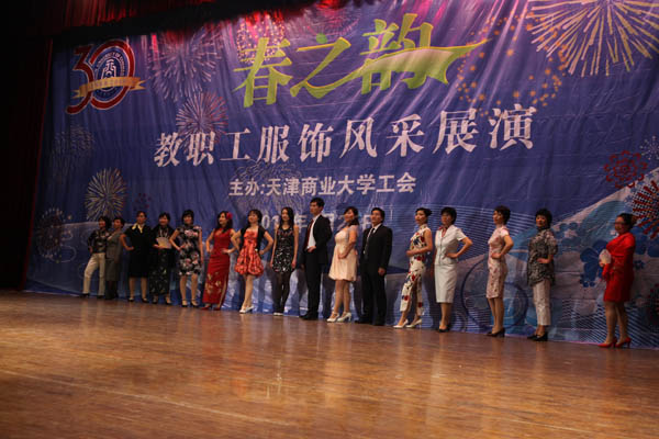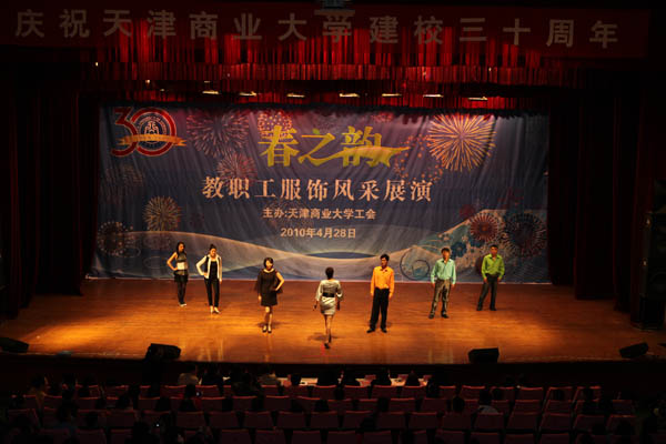 踏著春天的腳步我們迎來了建校 30 周年,廣大教師為我校的發展辛勤耕耘、碩果累累。為表達喜迎校慶的愉悅心情,全體教職工用服飾的風采展現天商教師的精神風貌。由校工會舉辦的 “ 春之韻 ” 教職工服飾風采展演,于 4 月 28 日下午在校科學會堂隆重舉行,校黨委副書記史習紅、校長助理黃作良、李真、寇小萱及各學院、黨政部門領導出席。全校教職工 600 余人觀看表演。