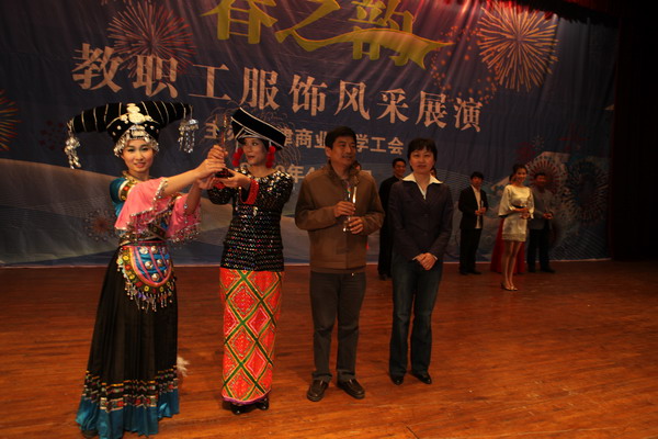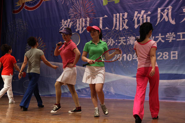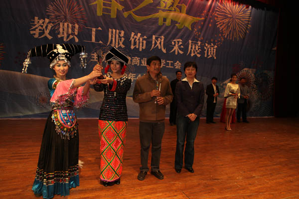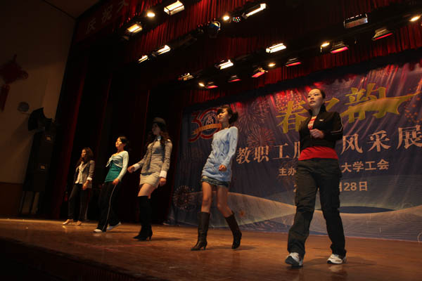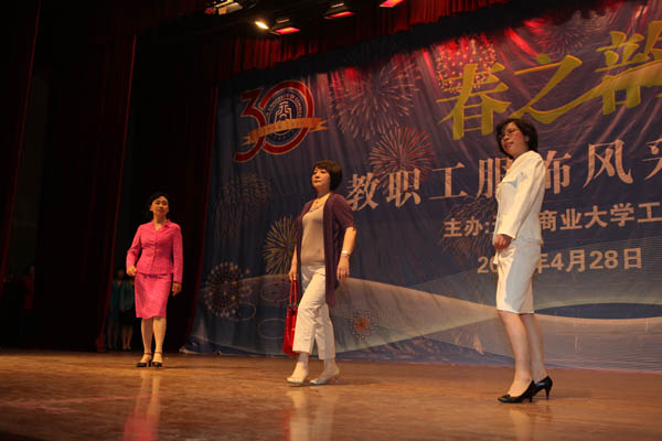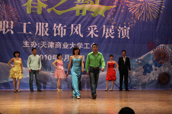 教職工服飾展演比賽在富有節奏感的音樂中拉開帷幕,展演比賽充滿激情。由全校 21 個分會組成的 18 支代表隊分別登場,大家的表演喜慶熱烈,服裝異彩紛呈。后勤產業集團充滿活力的運動裝;藝術學院反映東方韻味民族裝;機關高雅現代的職業裝;理學院喜慶活潑的時尚裝等等。比賽現場掌聲、喝彩不斷,大家陶醉在歡樂的氣氛中。