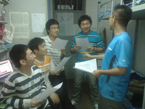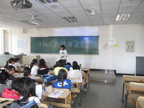 學生在宿舍中學習校歌