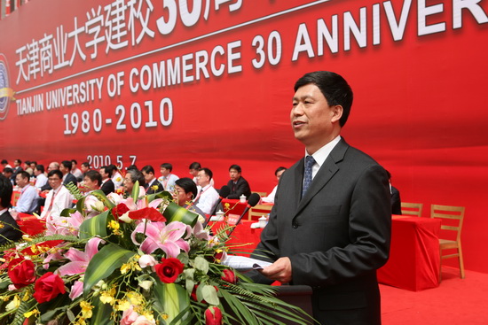 茍利軍說, 30 年來,天津商業(yè)大學(xué)認真貫徹黨的教育方針,始終堅持社會主義辦學(xué)方向,以人才培養(yǎng)、科學(xué)研究和服務(wù)社會為己任,秉承“篤學(xué)、弘毅、明德、濟世”的校訓(xùn),在歷屆領(lǐng)導(dǎo)班子的帶領(lǐng)下和幾代天商人的共同努力下,逐步形成了以商科為主,管、經(jīng)、工、法、文、理等多學(xué)科相互支撐、協(xié)調(diào)發(fā)展的多科性大學(xué),為國家和社會培養(yǎng)了一大批高素質(zhì)人才,做出了重要貢獻。當前,天津正在認真貫徹落實中央的一系列部署要求,著力構(gòu)筑 “ 三個高地 ” ,全力打好 “ 五個攻堅戰(zhàn) ” 。經(jīng)濟社會的快速發(fā)展,對人才的需求越來越迫切。他希望我校堅持繼承、發(fā)展、創(chuàng)新,把堅持以人為本、推進素質(zhì)教育作為改革發(fā)展的戰(zhàn)略主題,把握新時期教育規(guī)律、辦學(xué)規(guī)律和人才成長規(guī)律,進一步開闊視野,創(chuàng)新人才培養(yǎng)模式,促進內(nèi)涵發(fā)展,建設(shè)和諧校園,不斷增強辦學(xué)活力和核心競爭力,爭創(chuàng)全國高等院校一流水平,更好服務(wù)濱海新區(qū)開發(fā)開放、服務(wù)天津經(jīng)濟社會發(fā)展、服務(wù)人民群眾新期待新要求。