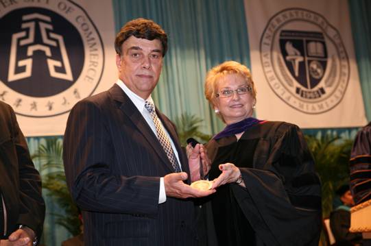 典禮中嘉賓為萬(wàn)豪集團(tuán)副總裁Steve Bauman頒發(fā)了FIU勛章,表彰他5年來(lái)為中國(guó)所做出的卓越貢獻(xiàn)。最后,198名畢業(yè)生依次走向講臺(tái),接過(guò)美國(guó)佛羅里達(dá)國(guó)際大學(xué)酒店管理科學(xué)學(xué)士學(xué)位證書(shū),為自己的四年大學(xué)生活劃上完美的句號(hào),合作學(xué)院2010屆學(xué)生畢業(yè)典禮在熱烈的掌聲中圓滿(mǎn)結(jié)束。
