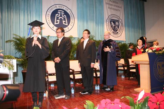 5月8日,TUC-FIU 合作學(xué)院2010 屆畢業(yè)典禮及學(xué)士學(xué)位授予儀式在學(xué)術(shù)交流中心隆重舉行。中國(guó)外商企業(yè)投資協(xié)會(huì)副會(huì)長(zhǎng)王述祖、FIU酒店管理學(xué)院代理院長(zhǎng) Joan S. Remington博士出席慶典并致辭。范雪菲同學(xué)代表全體畢業(yè)生在慶典上發(fā)言。天津市旅游局副局長(zhǎng)尹大勇、天津市教育委員會(huì)副局級(jí)調(diào)研員張向陽(yáng)、校長(zhǎng)劉書(shū)瀚、美國(guó)佛羅里達(dá)國(guó)際大學(xué)校長(zhǎng) Mark B. Rosenberg等也出席了畢業(yè)典禮。美國(guó)萬(wàn)豪集團(tuán)、英國(guó)洲際集團(tuán)、美國(guó)皇家加勒比游輪公司等企業(yè)、TUC-FIU 合作學(xué)院部分教師和 200多名學(xué)生以及學(xué)生家長(zhǎng)參加了典禮。合作學(xué)院院長(zhǎng)王文君主持典禮。