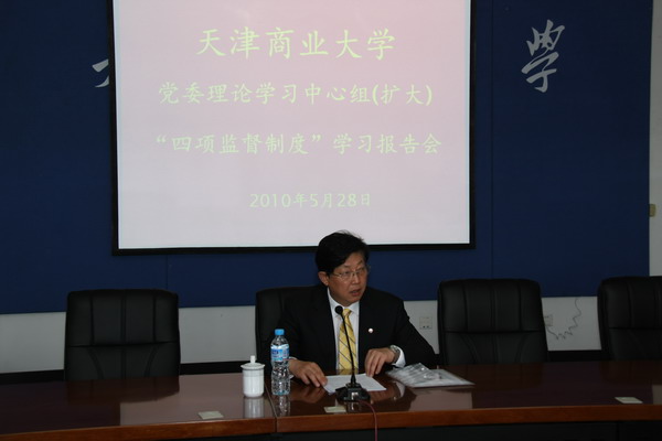 5月28日,校黨委中心組在圖書館二樓會議廳舉行理論學習會,采取播放音像資料的方式,組織收聽收看中央黨校高新民教授所做的題為《加強干部選拔任用監督,提高選人用人科學化水平》的專題報告。校黨委書記陳學奇主持。黨委中心組成員、各分黨委、黨總支、直屬支部書記、機關黨委所屬黨支部書記和機關處級以上干部40余人參加學習。