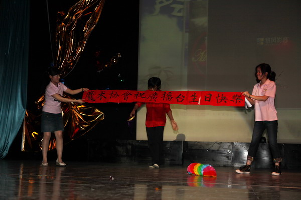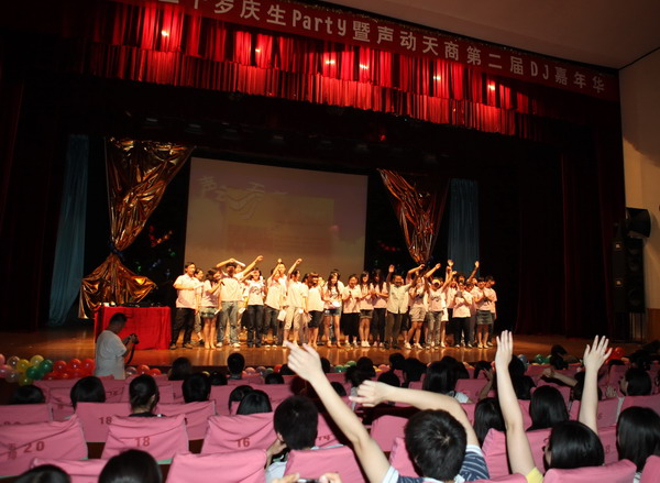 5月27日晚,校廣播臺臺慶紀念暨“聲動天商”第二屆DJ 嘉年華在科學會堂舉行。廣播臺指導教師柴桐出席了本次活動。天津人民廣播電臺文藝臺《大話小說》節目主持人慕容、《暢想移動》節目主持人一丁應邀參加活動并獻上了精彩的表演。天津市各高校廣播臺負責人到場同賀。當晚,天津音樂學院帶來的樂隊表演拉開了晚會的序幕。我校學生表演的街舞、互動魔術、相聲等精彩節目依次上演。電臺主持人慕容、一丁帶來的即興表演和廣播臺播音部的配音等節目更是幾度把現場氣氛推向高潮。