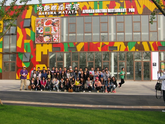 在世博園C片區(qū)非洲主題餐廳實(shí)習(xí)的學(xué)生