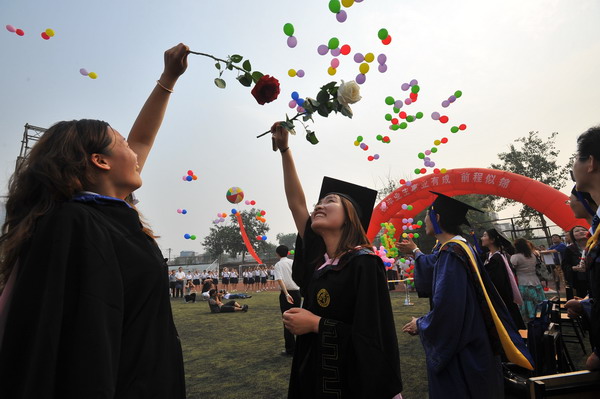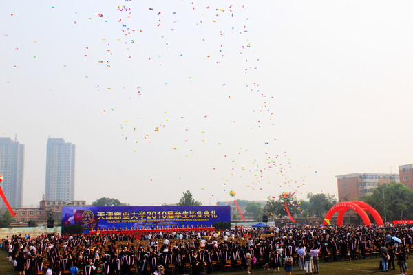 典禮最后,師生齊唱《天津商業大學校歌》,嘹亮的歌聲響徹校園。隨著一只只載滿學子夢想和希望的五彩氣球飛向天空,畢業生將手中的學位帽高高拋向了天空,這一刻,內心成功的喜悅和對未來人生的無限向往化為了畢業生臉上幸福的笑容,這一刻,母校的美麗景象和師生深厚情誼化為永恒將永遠深藏在畢業生的心中。