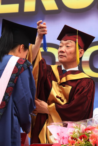校長劉書瀚為畢業生頒發畢業證書和學位證書并撥流蘇