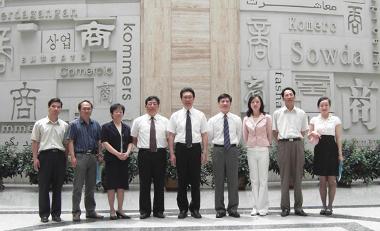 雙方參加揭牌儀式的人員在商字墻前合影留念