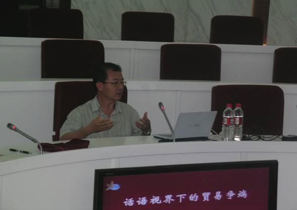施旭 教授非常關注外國語學院在當代中國新話語研究方面取得的進展,認為外國語學院師生在研究中國社會變革中話語的作用方面取得了令人矚目的成果,與他所提倡的中國話語研究在內容方面形成了優勢互補。這次來外國語學院進行學術交流,施旭教授對外國語學院師生的學術研究及研究生頗有深度的提問給予了很高評價。