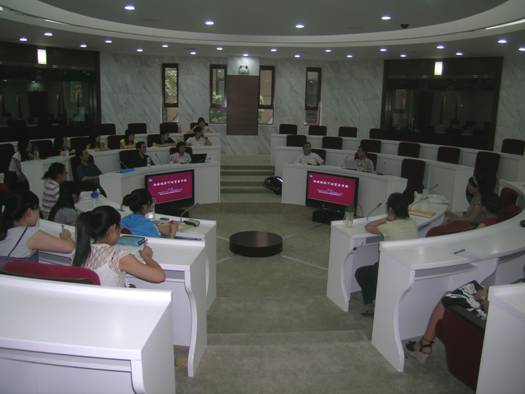 6 月 25 日 ,浙江大學外國語言文化與國際交流學院(外語學院)博士生導師施旭教授在我校新圖書館二樓圓廳作了關于“中國當代話語研究”的學術講座,并與我校外國語學院的老師及研究生做了深入的交流。講座前我校社科處王泓副處長與施旭教授進行交談。