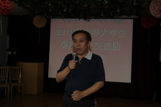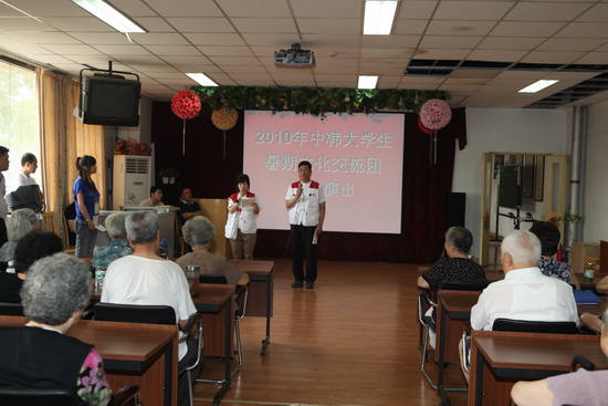 7 月 18 日 ,我校師生與韓國太平洋亞細亞協會( PAS )大學生暑期文化交流團共 40 余人前往市第一老年公寓進行了慰問活動。在老年公寓大禮堂舉行了文藝演出,韓國學生為老人們表演了韓國傳統節目小鼓舞、現代舞和跆拳道,中國學生表演了小合唱,千手觀音,中韓學生們的表演給老人們帶來了無限歡樂。第一老年公寓的孫院長參加了慰問活動并講話,韓國太平洋亞細亞協會代表團羅相輝團長致辭并向老年公寓贈送了禮物。