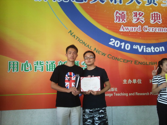 由外語教學與研究出版社主辦,歷時半年的2010 年“外研通”杯全國新概念英語大賽于8 月15 日在北京圓滿結束。來自北京、福建、廣東、廣西、黑龍江、吉林、遼寧、江蘇、上海、安徽、四川、天津等全國27 個省市賽區的近323 名選手經過三天四輪的激烈角逐,我校 TUC-FIU 合作學院093 班邱旭輝同學在外國語學院指導教師黃樂平的悉心指導下脫穎而出,獲得全國總冠軍,這也是天津選手在歷屆比賽中取得的最好成績。