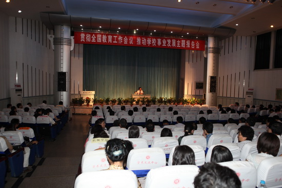 劉書瀚校長的報告共分三個部分:一是認真學習教育規劃綱要頒布和實施的重大意義,準確把握教育發展的形式;二是面對未來十年中國高等教育大發展的重要戰略機遇期,我校將主動適應高等教育改革發展的新形勢,進一步規劃好我校的辦學目標、發展思路、建設路徑;三是全力實施特色發展戰略、重點發展戰略和國際化戰略,在人才培養、學科建設和管理創新上,深化改革,加強內涵建設,實現學校的科學發展。
