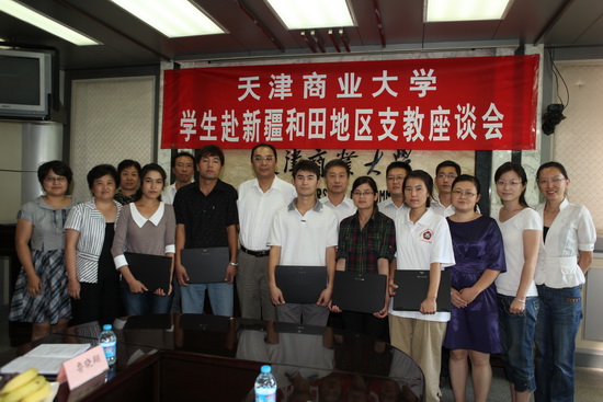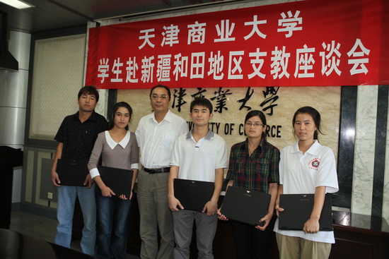 為落實(shí)全國對口支援新疆工作會議精神,做好天津教育支援新疆工作,校黨委按照天津市委、市政府的部署,選派商學(xué)院工商管理類092班孜克日亞·孜布比拉,工商管理類0913班 哈麗旦·依沙克,工商管理072班 喀哈爾·喀斯木,經(jīng)濟(jì)學(xué)院經(jīng)濟(jì)學(xué)類096班布阿米娜·阿卜杜賽麥提,生物技術(shù)與食品科學(xué)學(xué)院食品商品學(xué)091班 排孜來提·伊敏尼亞孜5名學(xué)生,經(jīng)過六周的集中培訓(xùn)將于9月12日赴新疆和田地區(qū)策勒縣,進(jìn)行為期一年的“雙語支教”工作。