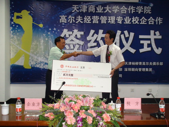 劉書瀚校長(zhǎng)在致詞中指出:作為現(xiàn)代服務(wù)業(yè)的高爾夫運(yùn)動(dòng)及其經(jīng)營(yíng)管理產(chǎn)業(yè)越來越受到社會(huì)的高度重視,而伴隨著產(chǎn)業(yè)發(fā)展、社會(huì)進(jìn)步和高等教育培養(yǎng)模式轉(zhuǎn)變應(yīng)運(yùn)而生的天津商業(yè)大學(xué)“高爾夫經(jīng)營(yíng)管理專業(yè)” 自誕生之日起就高舉校企合作辦學(xué)的特色大旗, 取得了可喜的收獲。