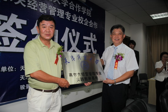會(huì)上,劉書瀚校長(zhǎng)為客座教授鄧洪青頒發(fā)了聘書。陳學(xué)奇書記為我校高爾夫經(jīng)營(yíng)管理專業(yè)實(shí)踐教學(xué)基地:天津 市駿景高爾夫俱樂部有限公司、天津市楊柳青高爾夫俱樂部、天津市北星高爾夫球場(chǎng)管理有限公司、深圳朝向管理集團(tuán)分別授牌。