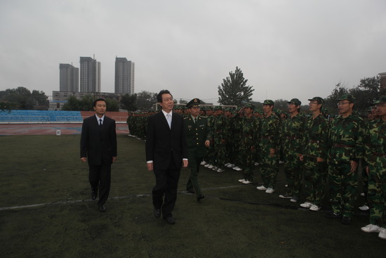 9月18日上午,2010級學(xué)生軍訓(xùn)總結(jié)大會在校運動場舉行。校長劉書瀚、校紀委書記路波,武警六支隊一大隊副大隊長劉曉偉,教務(wù)處處長于義良,各學(xué)院黨總支分管學(xué)生工作的書記、副書記出席了總結(jié)大會。大會由校武裝部部長賈青主持,校長劉書瀚在劉曉偉和賈青的陪同下檢閱了參加軍訓(xùn)的2010級全體學(xué)生。