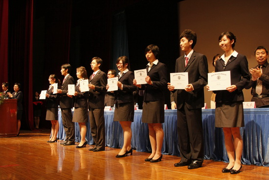 近日,根據(jù)美國萬豪基金會的要求,經(jīng)美國佛羅里達國際大學(FIU )酒店與旅游管理學院獎學金評定委員會嚴格評選,TUC-FIU合作學院2007級楊睿潔、趙云飛、任琳、謝龑、陳玉琛、齊瑤、于祥意和高夢晗等 8 名同學從眾多申請者中脫穎而出,榮獲每人32800 元的萬豪獎學金。美國萬豪國際酒店集團天津萬豪行政公寓總經(jīng)理Steven You先生專程到我校為獲獎學生頒發(fā)了獎學金。