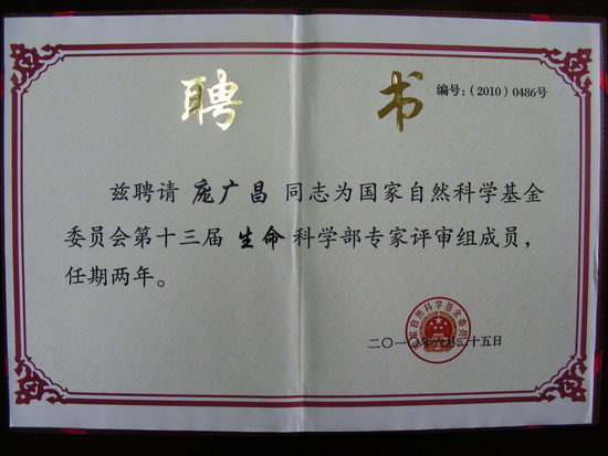 龐廣昌教授獲聘國家自然科學基金會委員會專家評審組成員(圖文)