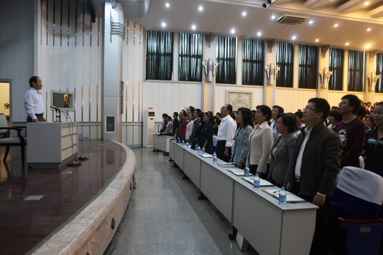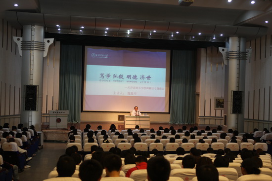 9月29日下午,魏胤亭副校長為5367名2010級本科及研究生做專題報告,解讀校訓深刻內涵。此次校訓解讀專題報告會以學術交流中心為主會場,3 號教學樓、4 號教學樓為分會場共計37間多媒體教室同步視頻直播。校紀委書記路波、學工部(處)全體老師,各學院分管學生工作書記、副書記,全體輔導員,全體2010級新生班主任參會聽報告。