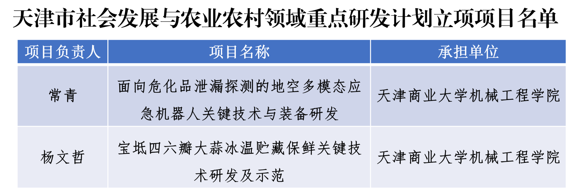 近日,天津市科學技術局公布了天津市社會發展與農業農村領域重點研發計劃立項項目名單,我校機械工程學院常青副教授和楊文哲副教授主持申報的兩項科研項目成功入選。