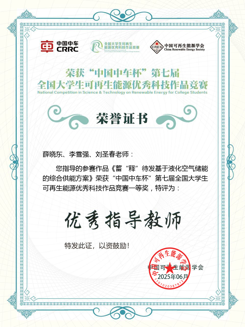 近日,“中國中車杯”第七屆全國大學生可再生能源優秀科技作品競賽決賽開幕式在鹽城舉行。本次競賽共收到全國305所高校提交的2013項參賽作品。經過專業評審,最終評選出特等獎12項、一等獎61項、二等獎144項、三等獎396項。其中,由機械工程學院院長劉圣春教授、新能源科學與工程系教師薛曉東和李雪強副教授共同指導的本科生喜獲“中國中車杯”第七屆全國大學生可再生能源優秀科技作品競賽一等獎,三位老師被評為“優秀指導教師”。