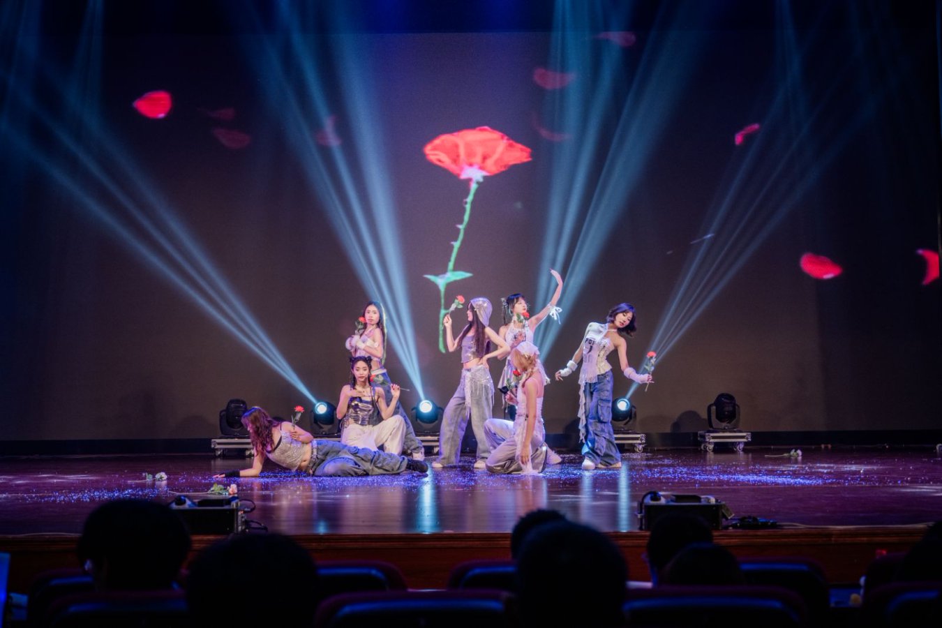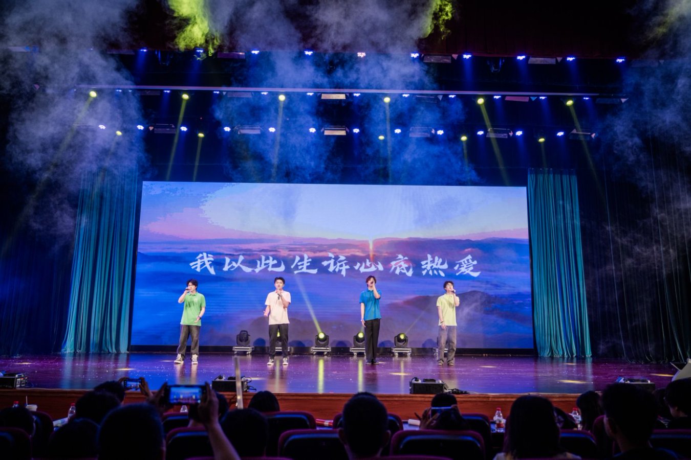 晚會以一首搖滾風格的歌曲《鮮花》熱力開場,為畢業晚會拉開“不被定義的青春序章”。第一篇章“初相遇·你好天商”:歌曲《親愛的你啊》用溫柔聲線治愈心靈,喚醒青春記憶;音樂情景劇《那些年》用歌聲結合表演,生動演繹了天商校園里那些難忘的故事和瞬間;舞蹈串燒《Girlfriends》《Is this love》以動感節奏激活氣氛,傳遞天商青春能量;歌曲《無條件》《最佳損友》用動人旋律歌唱了校園友情的永恒與美好;相聲《畢業快樂》中演員帶來了精彩的原創快板表演,在一捧一逗中分享在商大的歡樂故事。