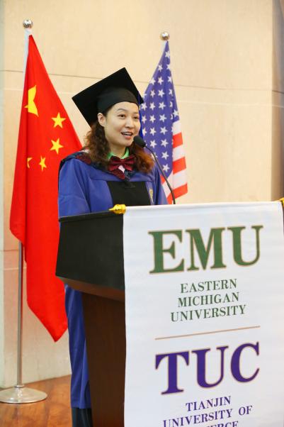 畢業生代表、天津二商集團張穎璐同學在發言中向給予大力支持的母校,向傾心教導的老師表示感謝。她重溫了兩年前加入項目學習時的激情與篤定,回顧了兩年間老師們耐心講解、循循善誘,同學們勤勤懇懇、互學互鑒的點點滴滴,分享了如今如愿獲得學位證書的喜悅,展望未來,她表示“夢在前方、路在腳下;未來可期、奮斗以成”,今后會銘記“篤學 弘毅 明德 濟世”的校訓,在更廣闊的舞臺上施展才干,在高質量發展的新征程上書寫“功成必定有我”的新篇章。