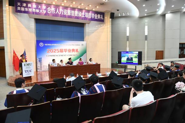 6月28日,在圖書館國際報告廳隆重舉辦我校與美國東密西根大學合作人力資源管理碩士項目2025屆畢業典禮。校黨委副書記、校長陳冠益出席,國際交流處、國際教育合作學院負責同志,項目2025屆全體畢業生參加典禮儀式。