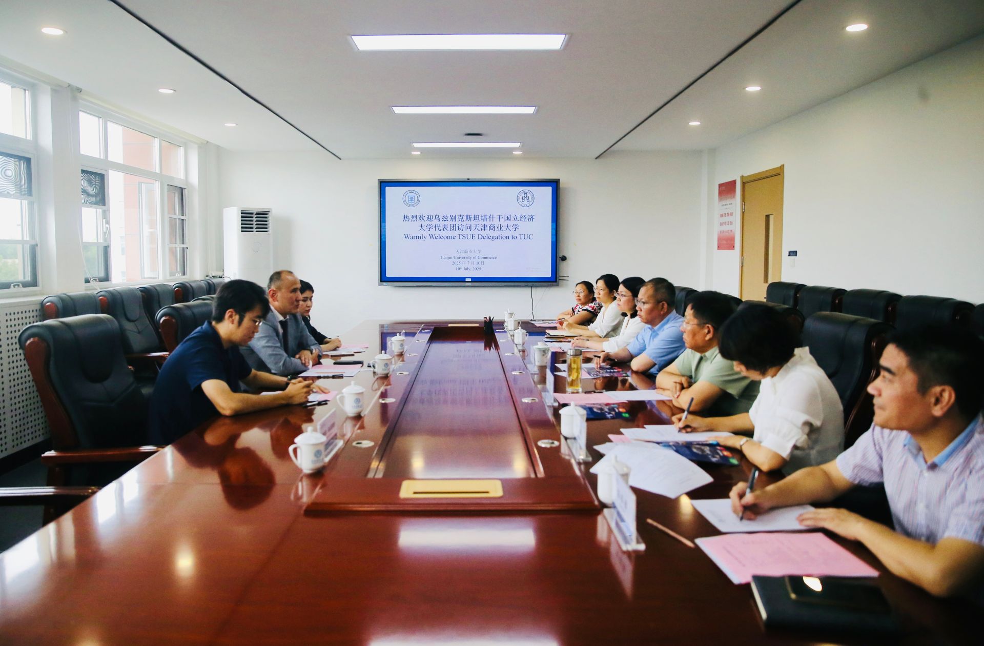 阿利姆納扎爾·伊斯蘭庫洛夫先生對學校的熱情接待表示感謝。他介紹了塔什干國立經濟大學的發展歷程、辦學成果及國際合作情況,并特別介紹了學校的機構設置。他強調,今年正值“上合峰會”在天津舉辦,烏茲別克斯坦作為上合組織成員國,兩校的合作恰逢其時。他希望能以此次交流為契機,加強兩校之間的交流與合作。