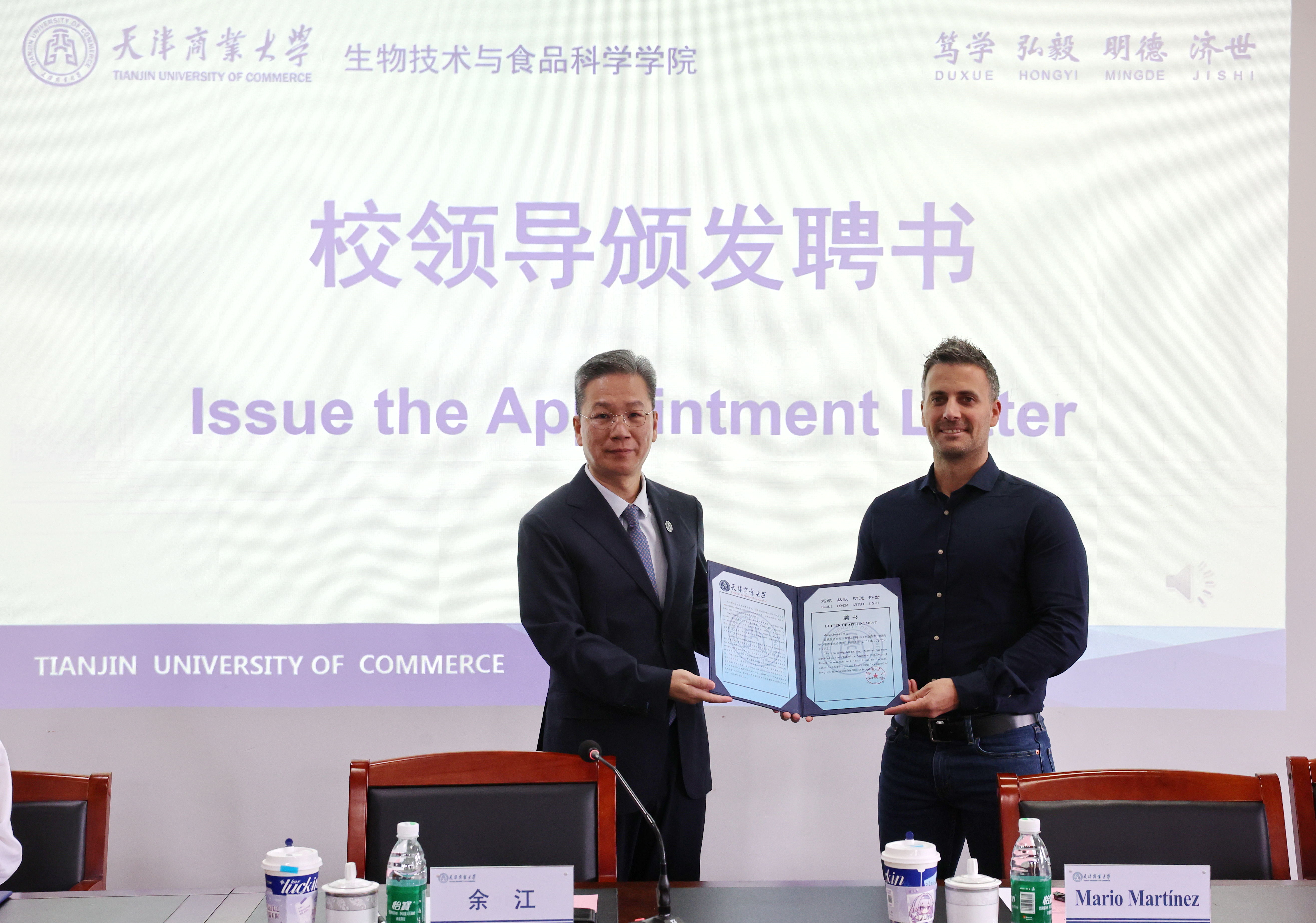 余江向三位外籍專家的到來表示熱烈歡迎。他表示,三位博士在世界著名大學工作,是國際食品領域知名專家,希望圍繞科學研究、人才培養(yǎng)等方面與學校開展廣泛、深入交流與合作,積極支持天津市食品科學與工程國際聯(lián)合研究中心的建設與發(fā)展。余江代表學校聘請Mario Martínez和Laura Román二位外籍博士專家為天津市食品科學與工程國際聯(lián)合研究中心學術委員會委員,并頒發(fā)聘書。