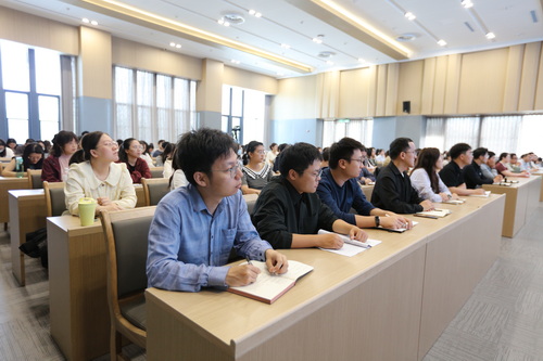 陳冠益帶領新入職教師深入學習了習近平總書記關于教育的重要論述,指出新入職教師要貫徹黨的教育方針,落實立德樹人根本任務,牢記“為黨育人、為國育才”的初心使命,深刻領會教育家精神的核心要義,堅守師德師風第一標準,以德立身、以德立學、以德施教。鼓勵青年教師積極投身科學研究工作,不斷提高科研水平,帶動教育教學水平提升。踐行教育初心,努力成長為黨和人民滿意的“四有”好老師。