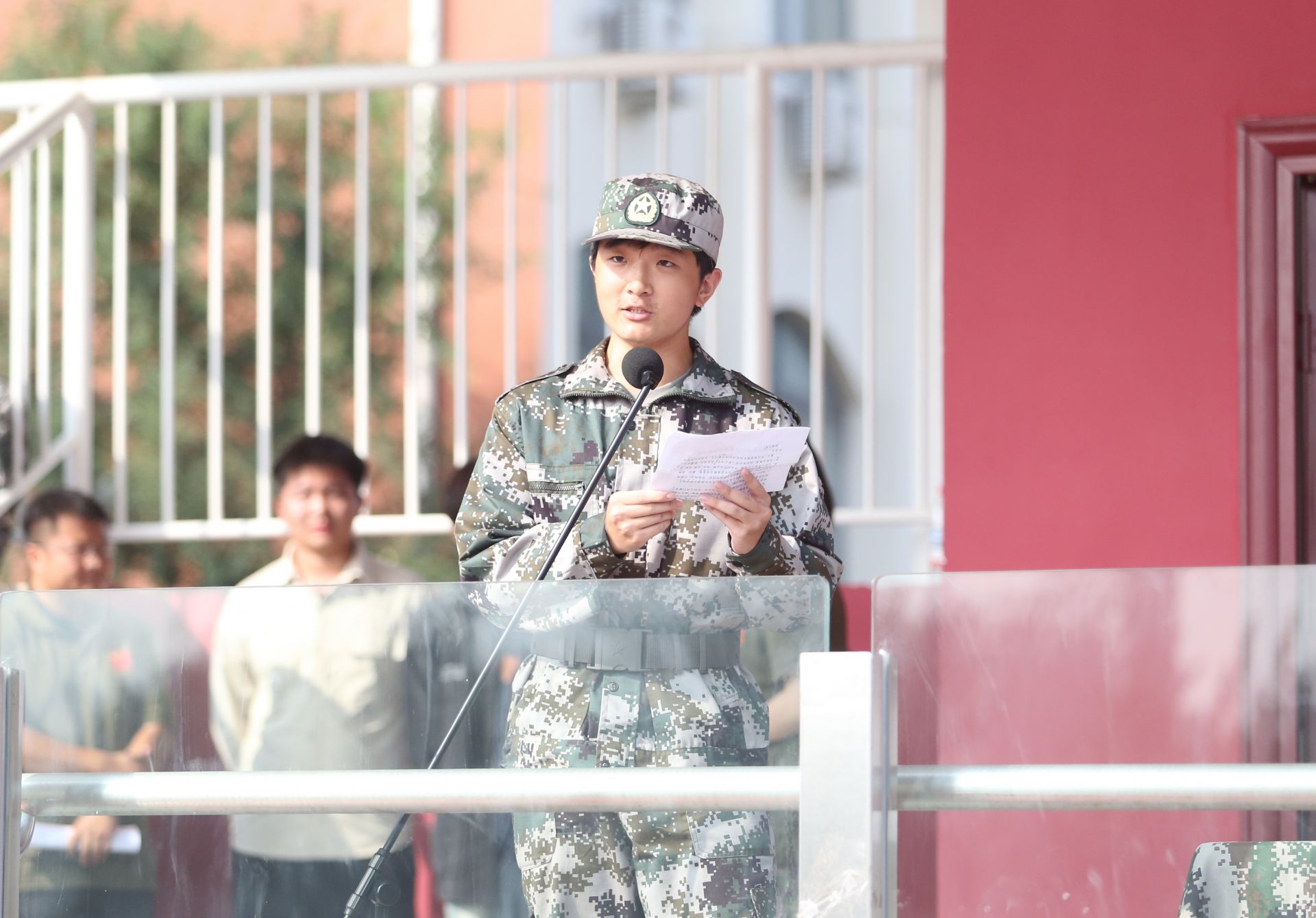 一營四連機(jī)械設(shè)計(jì)及其自動化專業(yè)2503班謝一鳴作為2025級參訓(xùn)學(xué)生代表發(fā)言,分享了軍訓(xùn)期間的收獲與感悟,表達(dá)了對學(xué)校、教官、老師的感謝以及對未來大學(xué)生活的期待。