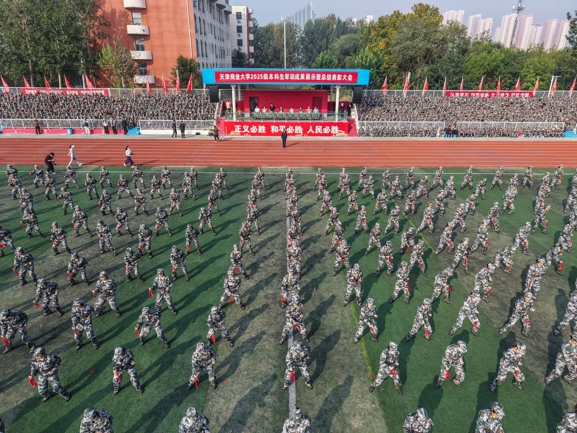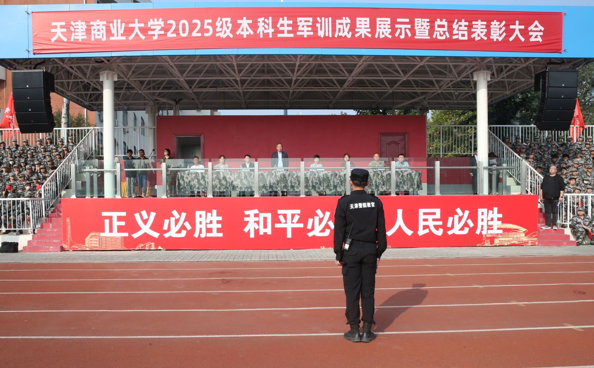 9月28日上午,學(xué)校2025級本科生軍訓(xùn)成果展示暨總結(jié)表彰大會在學(xué)校運(yùn)動場隆重舉行。校黨委副書記、校長陳冠益,校黨委副書記王立云出席。北辰區(qū)人民武裝部、天津警察學(xué)院相關(guān)負(fù)責(zé)同志,以及校黨委宣傳部、人民武裝部、校團(tuán)委、教務(wù)處相關(guān)負(fù)責(zé)同志,各學(xué)院教導(dǎo)員、承訓(xùn)教官、跟訓(xùn)輔導(dǎo)員和2025級參訓(xùn)學(xué)生參加。
